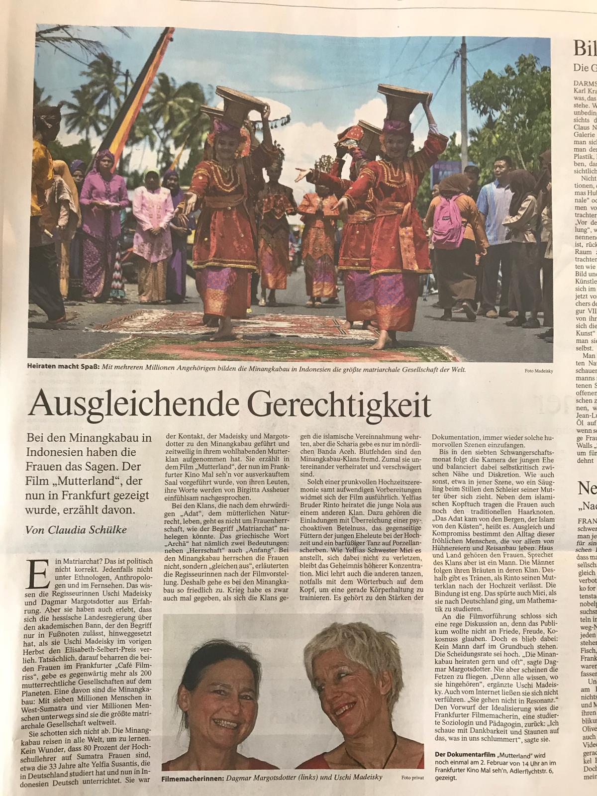 In West-Sumatra, Indonesien befindet sich die Heimat der Minangkabau. Mit mehreren Millionen bilden sie die größte matriarchale Gesellschaft der Welt. Sie leben nach dem Adat, dem mütterlichen Naturrecht – in friedlichem Zusammenleben mit dem Islam. Haus, Hof und Land liegen bei ihnen in den Händen von Frauen. Der Film erzählt vom Alltag aus der Perspektive der 33-jährigen Yelfia Susanti, die es versteht, mit ihrem großen Klan für Ausgleich und ein gutes Leben für alle zu sorgen.